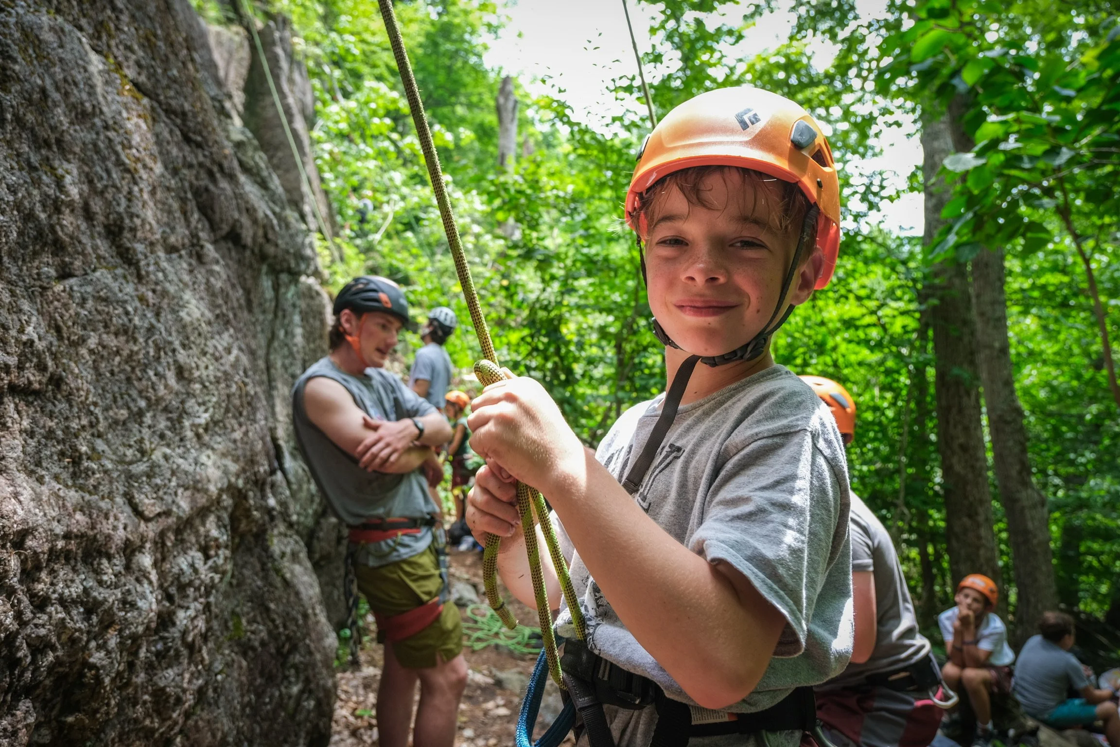 Upon arrival at our outdoor classroom, kids will focus on learning new skills like knot-tying, belaying, rappelling, and climbing movement. After the lesson, our guides will provide a safety briefing and demonstration before our young climbers break up into teams to practice their new skills.