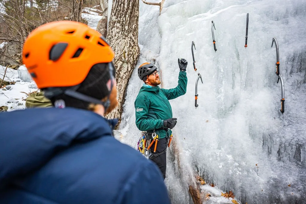 Noah Kleiner is a highly experienced and deeply committed climbing guide, educator, and business owner based in Camden, Maine. As the founder of Equinox Guiding Service, the only AMGA-accredited guide service in Camden, Noah brings over 20 years of experience in the climbing industry to his work. His expertise spans rock, ice, and alpine climbing, and he’s one of the few AMGA-certified Multi-Pitch Instructors in Maine.